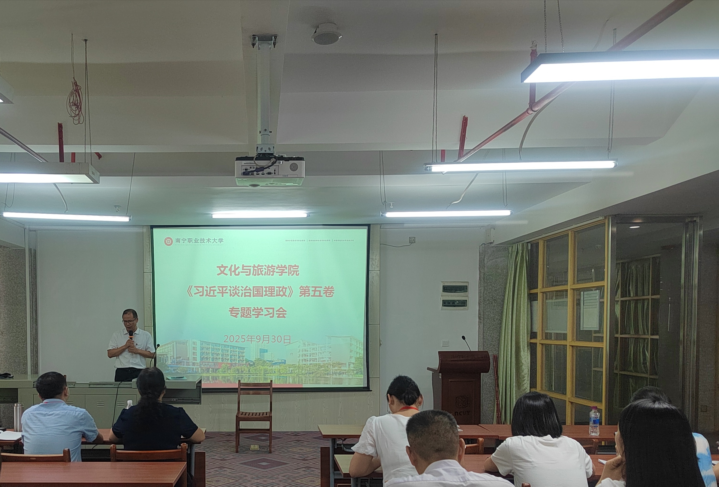 黄全宾要求学院全体教职工要深刻把握《习近平谈治国理政》第五卷的核心要义和精神实质,将其作为指导实践、推动工作的强大思想武器。同时,要紧密结合职业教育与文旅产业发展实际,深入领会习近平总书记关于全面深化改革的重要论述,不断增强改革意识、创新意识和责任担当,在今后的工作中以更加饱满的热情和务实的作风,进一步落实立德树人根本任务,为推动学院高质量发展贡献智慧与力量。