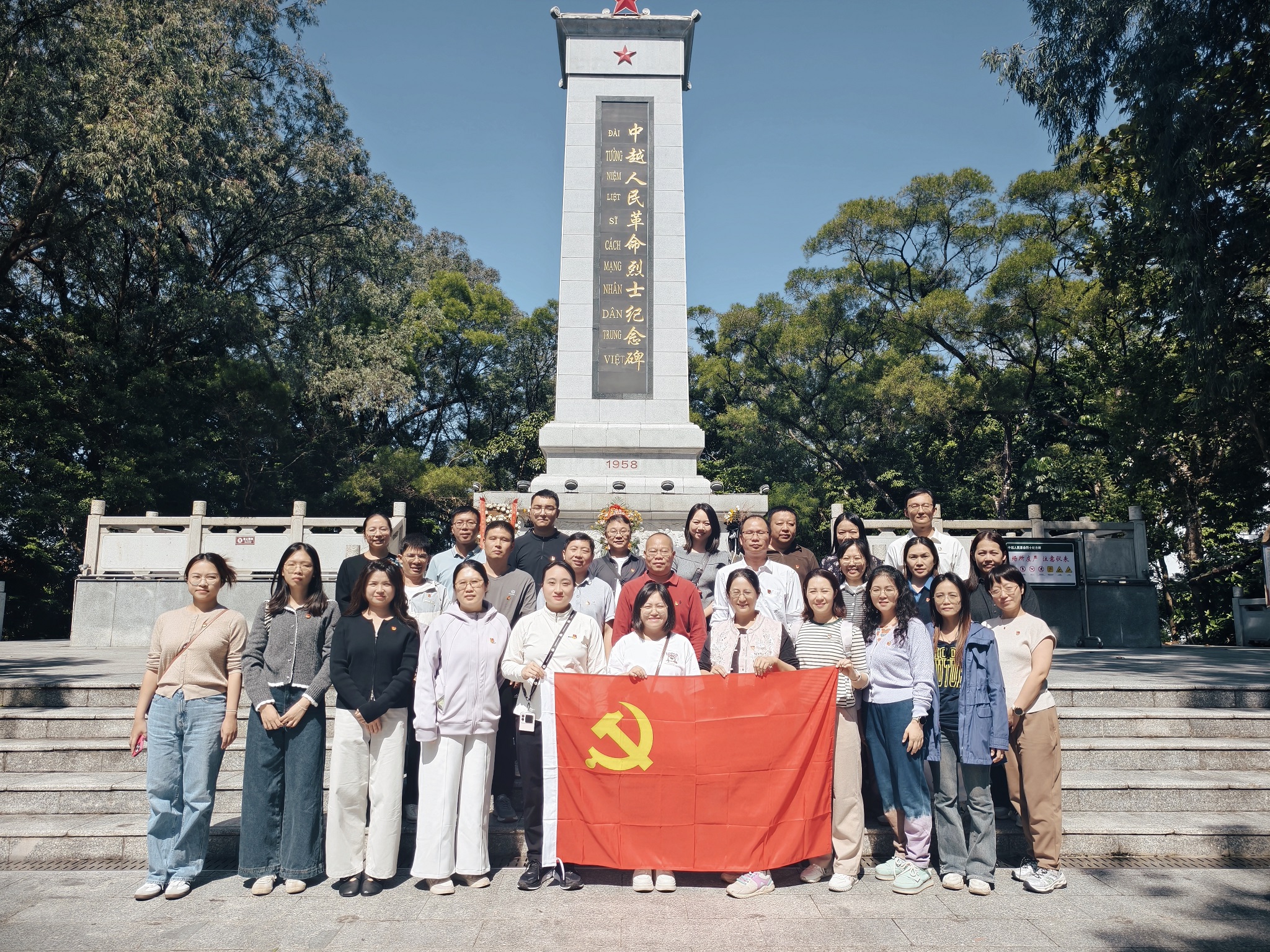 全体党员在中越人民革命烈士纪念碑合影(王强/摄)