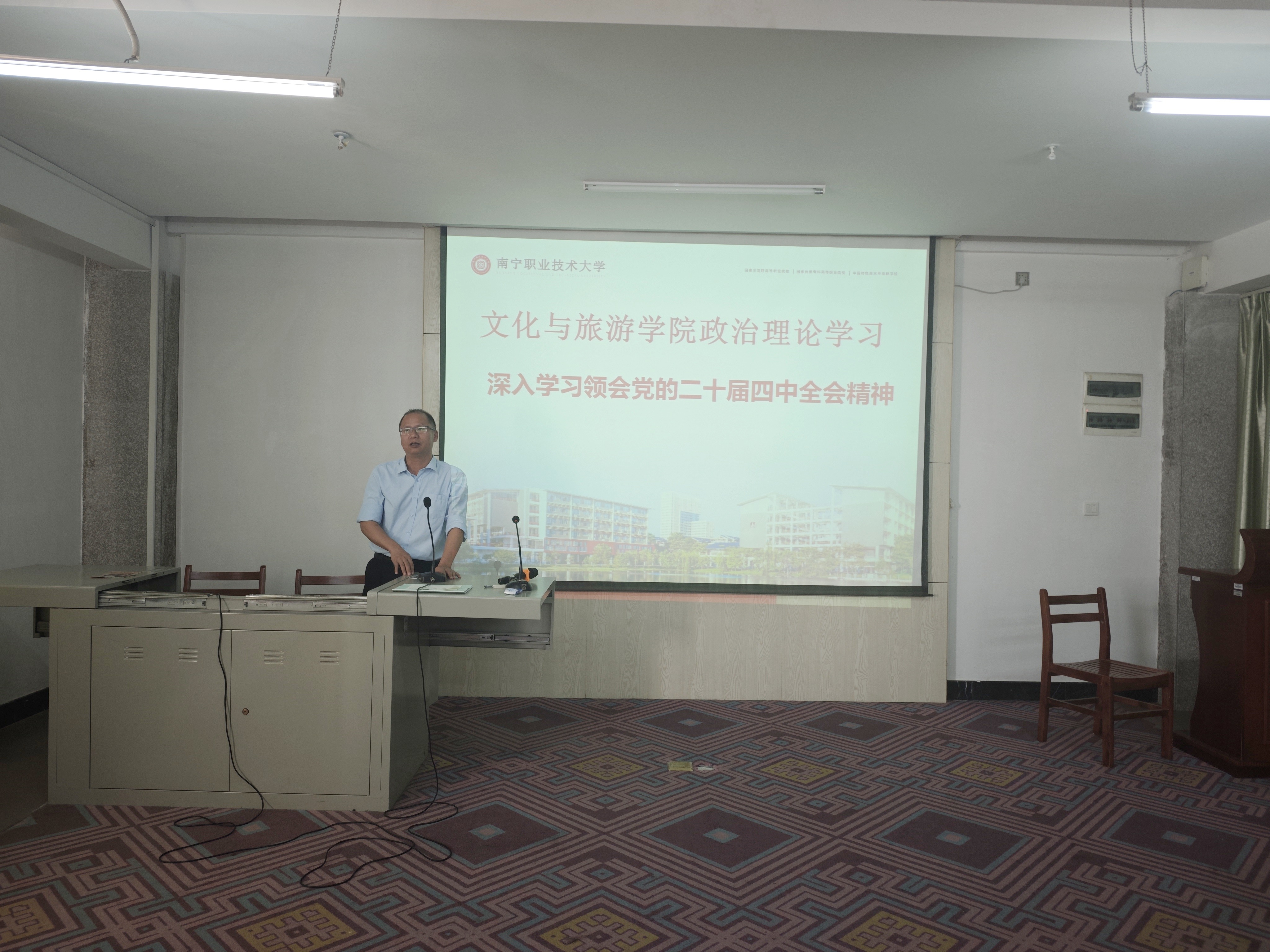 为深入学习宣传贯彻党的二十届四中全会精神,12月2日下午,学院党委副书记黄全宾在全体教职工例会上领学党的二十届四中全会精神。