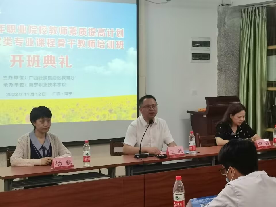 据悉,本次培训由广西壮族自治区教育厅主办,南宁职业技术学院承办,在为期10天的学习过程中,将采取主题式培训、任务驱动、师徒制带训、案例式、探究式、“集中培训+实操实践”等方式,以及通过研讨互动、参与式、体验式的学习,重点围绕技术技能实训、专业教学法应用与实践、课程开发技术与应用、信息技术应用、模块化教学研究等内容,协同提升教师实践教学、研究协作能力,促使其教学技能与方法得到明显改善,提升“双师”素质。
