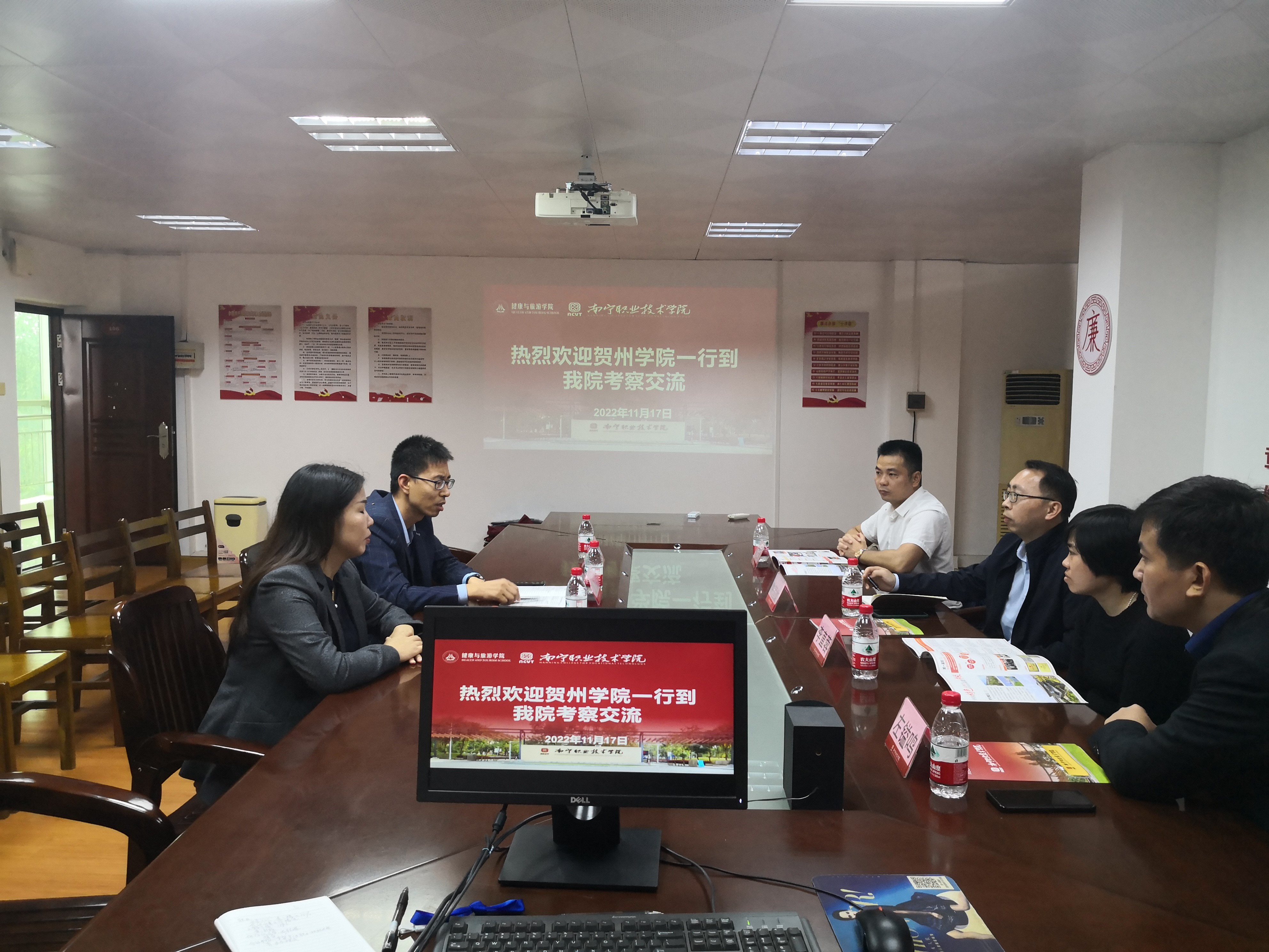 11月17日上午,贺州学院应用技术学院副院长陈国雄一行4人到健康与旅游学院考察交流。党委书记、院长屠瑞旭出席座谈交流会,党委副书记袁榕参加座谈。