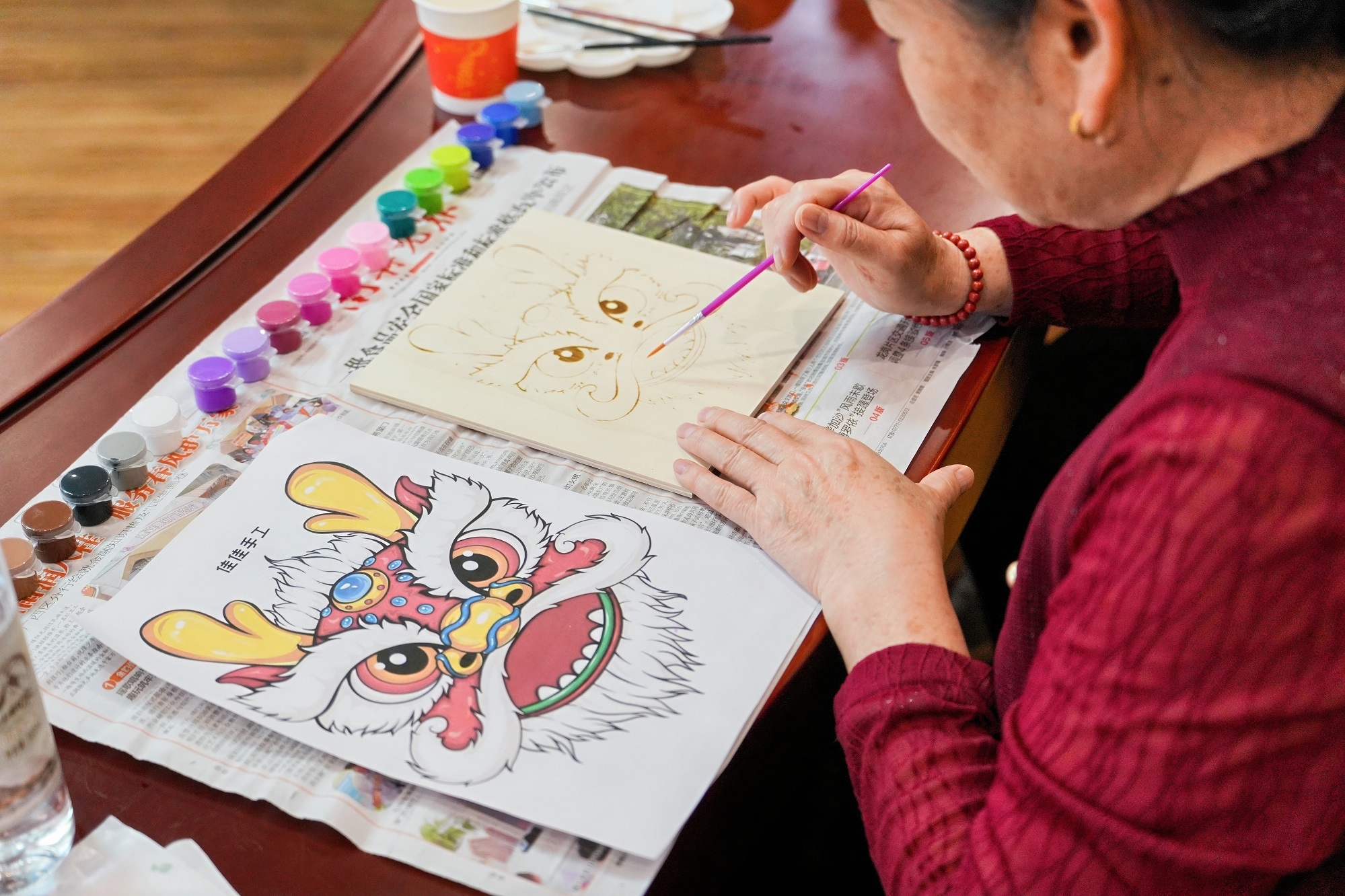 银发学员进行狮舞作品创作(林筱筠/摄)