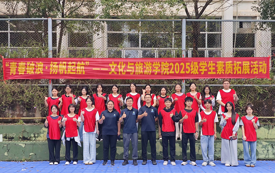 为通过沉浸式、体验式、互动式的心理素质拓展活动,帮助2025级新生快速适应大学生活,增强心理韧性,培养积极向上的心态,促进其人格完善与自我成长,为大学阶段的全面发展奠定坚实心理基础,文化与旅游学院于2025年11月9日上午在学校篮球场举办了“青春破浪 扬帆起航”2025级新生心理素质拓展活动。
