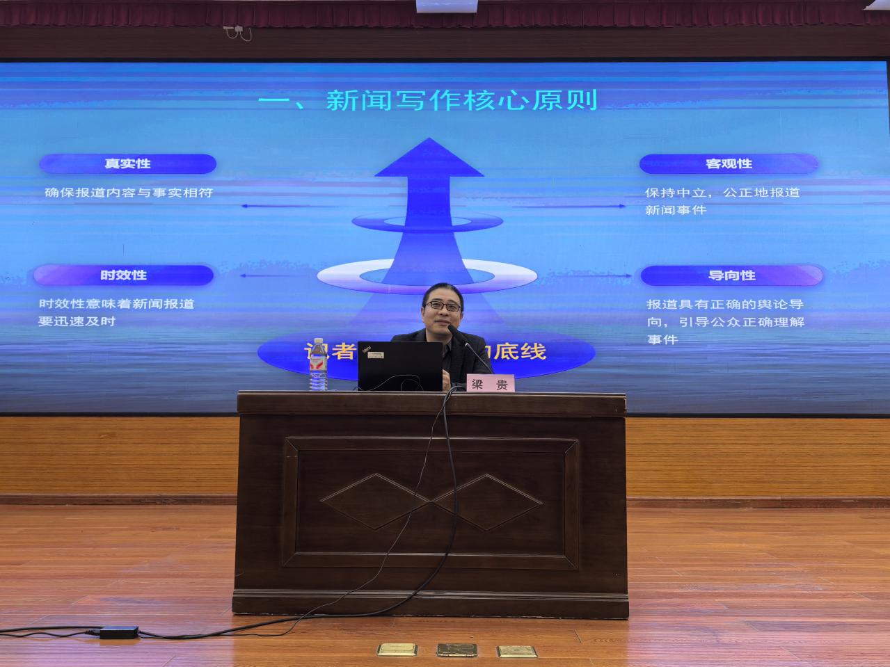 主讲老师梁贵在分享新闻写作的思考(李婷娟/摄)