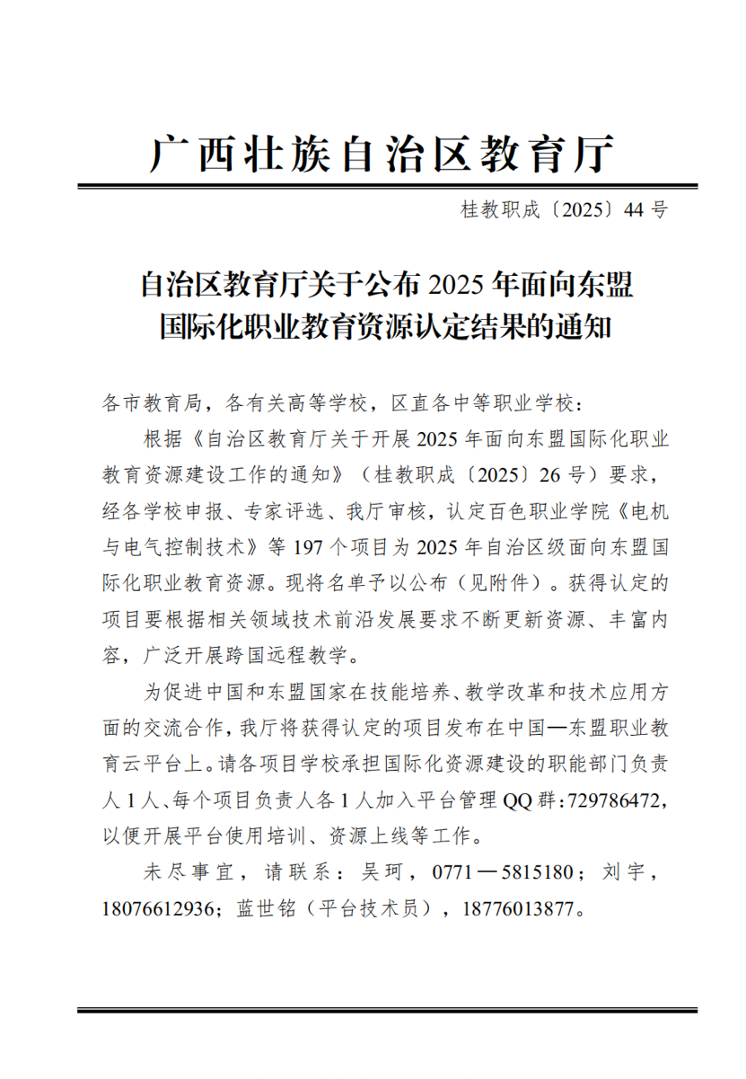 2025年自治区级面向东盟国际化职业教育资源认定名单截图(覃思源供图)