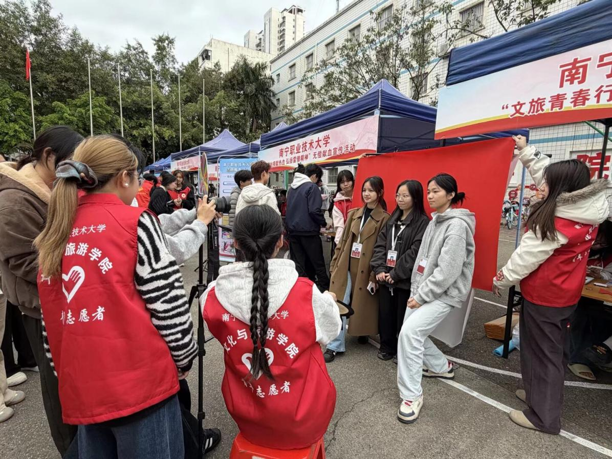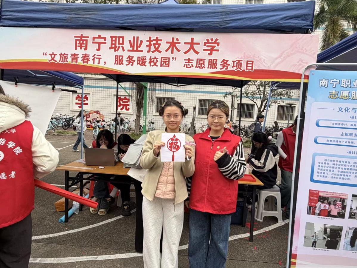 为弘扬雷锋精神,践行“奉献、友爱、互助、进步”的志愿精神,2026年3月10日,南宁职业技术大学“青春志愿行 建功新征程”学雷锋志愿服务集中展示交流活动在东盟广场顺利开展。我院紧扣专业特色,以“文旅青春行,服务暖校园”为主题,开展了免费电子证件照拍摄、非遗剪纸体验等特色志愿服务项目,以实际行动书写新时代雷锋故事,展现我院学子积极向上的精神风貌。