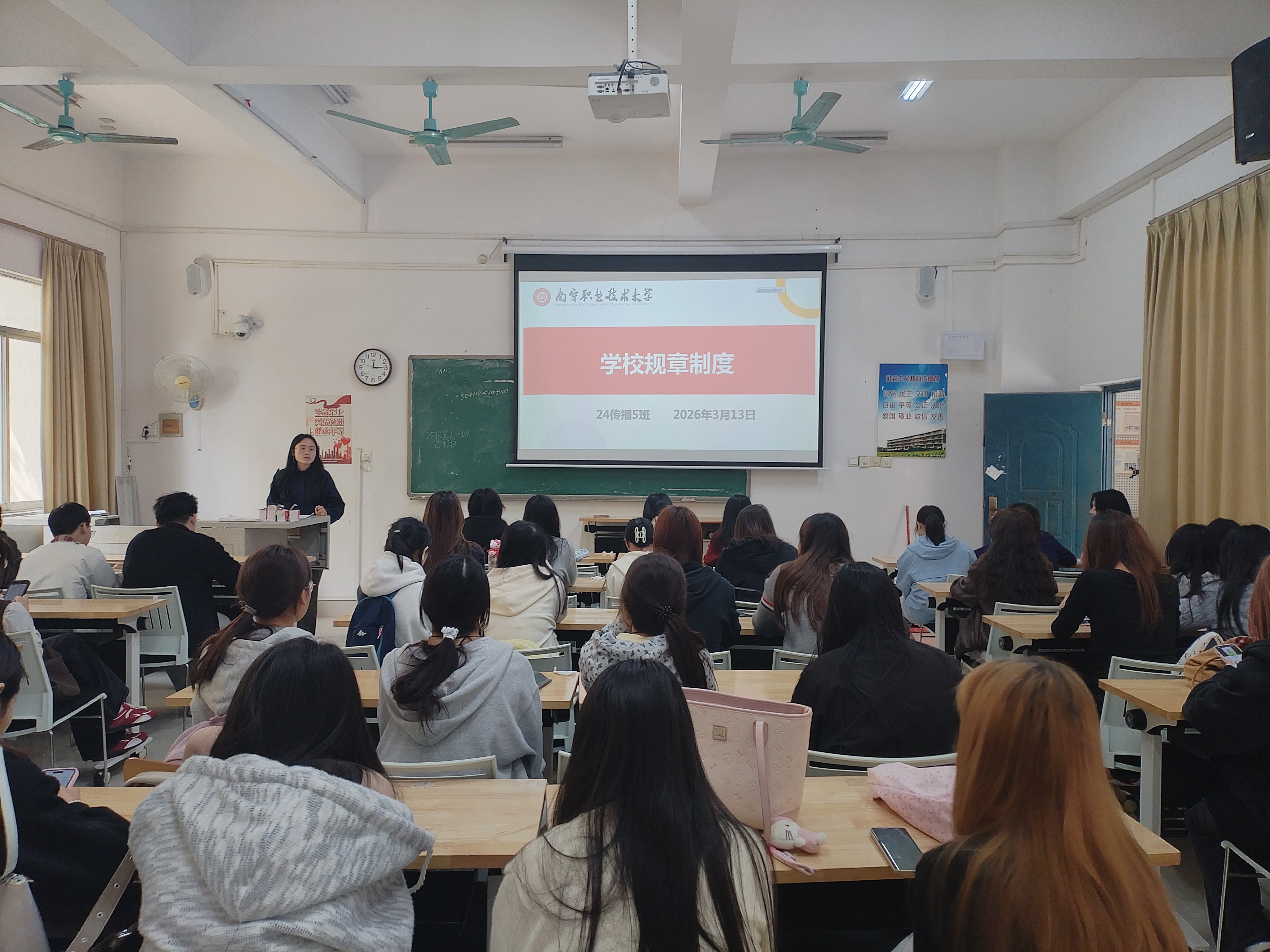 班会由各辅导员主持,围绕校园安全、学风建设、网络文明、心理健康、学籍资助、实习就业等重点内容展开。会上重点讲解消防安全、宿舍用电规范、防电信网络诈骗等知识,普及“十个凡是”“四个不”等防诈要点,强调文明上网、严禁“翻墙”,引导学生严守网络安全底线。同时,结合学籍注册、学费缓交、仪容仪表、课堂纪律等要求作出明确提醒,督促学生规范日常行为、尽快适应校园学习节奏。