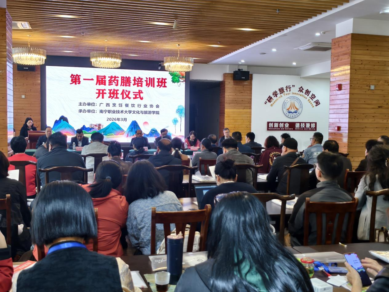 3月21日,由广西烹饪餐饮行业协会主办,我院承办的第一届药膳培训班在学校第二实训楼正式开班。来自广西各地的40余名餐饮从业者及药膳爱好者参加培训。此次培训班的举办,是我院发挥职业院校资源优势、深化社会培训、提升社会服务能力的重要举措。
