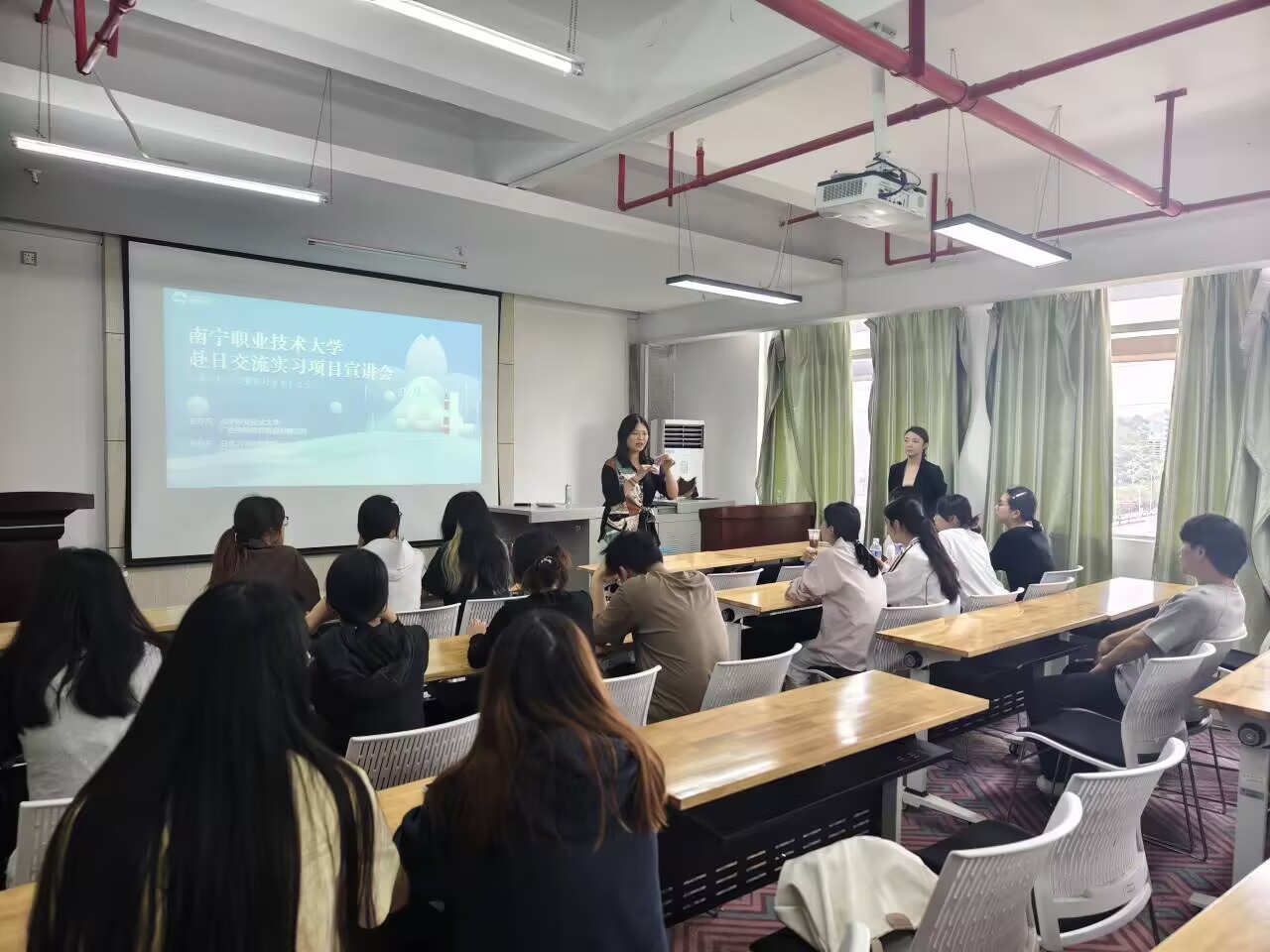 为进一步拓宽学生就业与实践渠道,为同学们提供多元化的实习发展机会,助力学生提升专业能力、拓展国际视野,科学规划职业成长路径,3 月 24 日下午,我院特邀职业成长导师、广西樱桥教育咨询有限公司负责人安丽然,于二训505 教室顺利开展赴日带薪实习项目专题宣讲会。学院相关负责老师及感兴趣的同学到场参与。