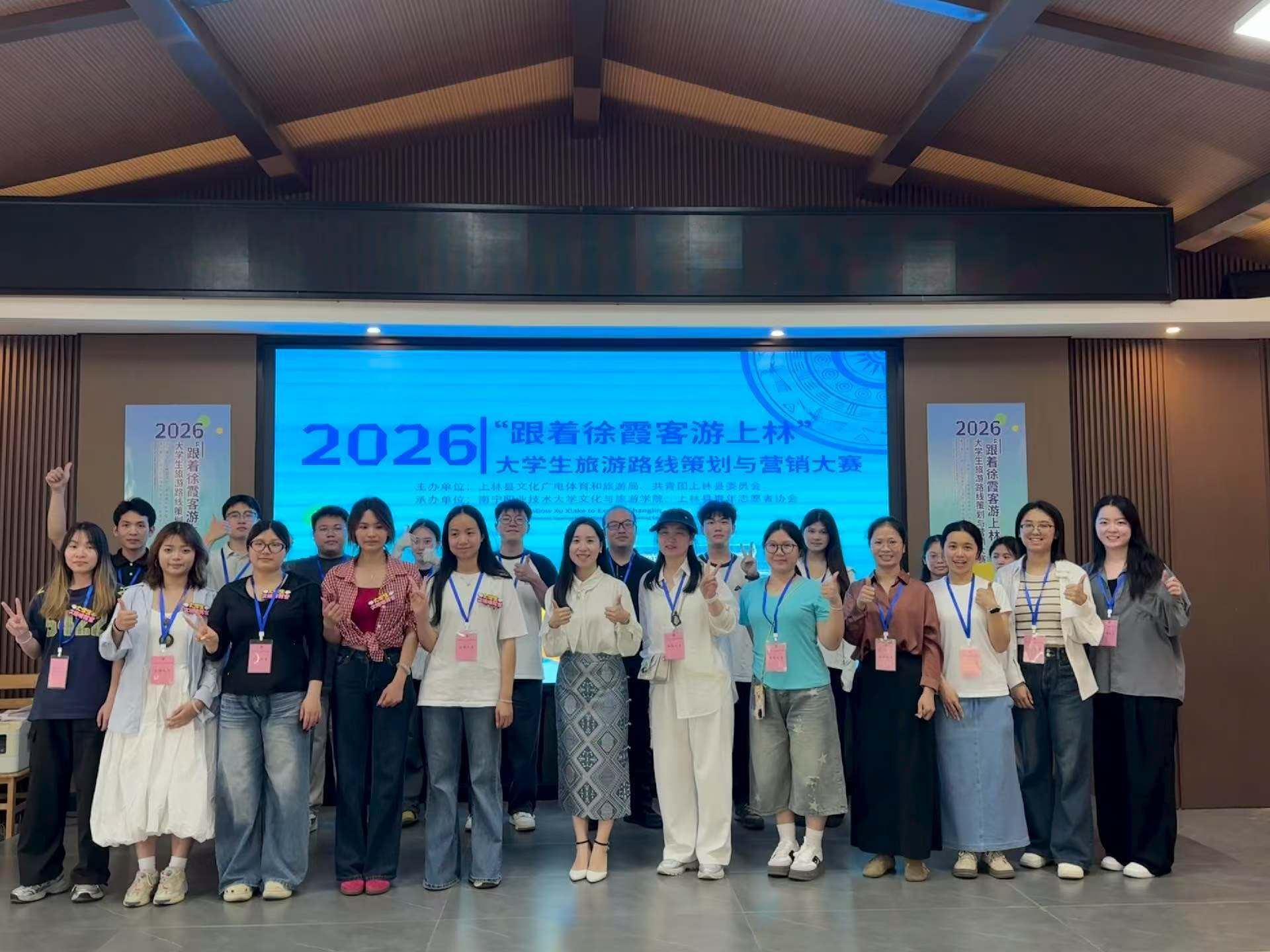 4月11日,“跟着徐霞客游上林”大学生旅游线路策划及营销大赛决赛在上林县举行。学院6名文旅推荐官前往决赛现场,承担赛事组织、现场引导、秩序维护等多项服务工作,为大赛顺利举办贡献了青春力量。