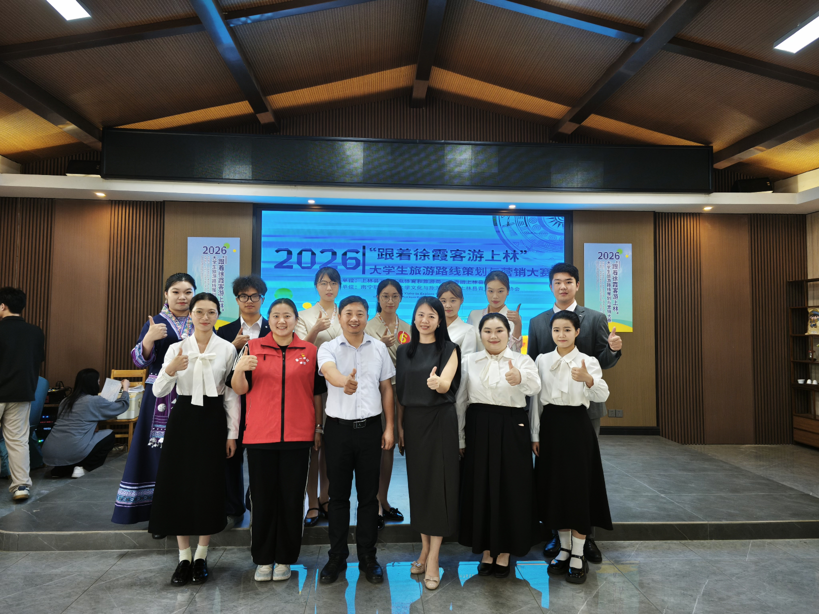 本次大赛由上林县文化广电体育和旅游局、共青团上林县委员会主办,南宁职业技术大学文化与旅游学院承办。赛事以“徐霞客游上林”文化IP为核心,面向广西各高校征集兼具文化性、创新性与可操作性的旅游线路与营销方案,旨在以青年智慧赋能地方文旅发展。大赛吸引了全区众多高校精英团队参与,竞争异常激烈。为备战此次大赛,学校高度重视、精心组织。