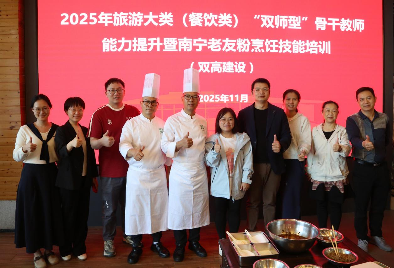 为传承发展广西传统特色美食文化,推动南宁老友粉产业标准化、专业化建设,2025年11月15日,文化与旅游学院举办2025年旅游大类(餐饮类)“双师型”骨干教师能力提升暨南宁老友粉烹饪技能培训,吸引广西区内中高职烹饪院校教师及餐饮行业从业人员90余人参加。活动特邀广西绿岛阳光餐饮投资管理有限公司资深烹饪大师蓝仁善、庞永全主讲,现场围绕南宁老友粉的历史渊源、食材甄选、烹饪技艺及标准化制作流程展开系统培训,演示了...