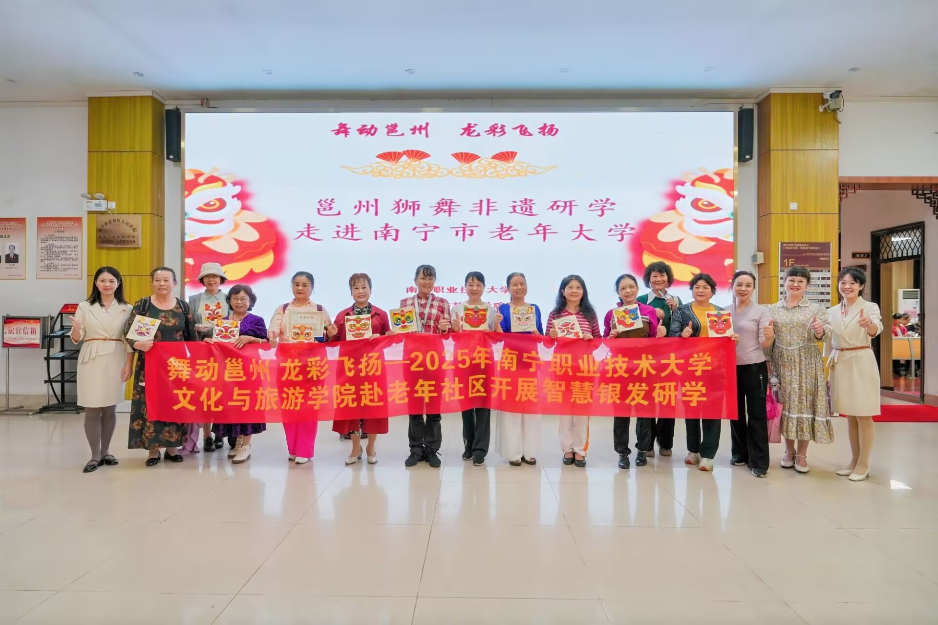 2025年10月30日,南宁职业技术大学文化与旅游学院旅游管理专业教师赴南宁市老年大学,开展一场集科技展示与传统文化体验于一体的狮舞智慧研学活动。活动环节包括沉浸式感受邕州狮舞的独特魅力,通过机器狗互动、激光雕刻演示、历史溯源、狮头上色实践等丰富环节,让老年学员们在趣味体验中感受传统文化与现代科技的深度融合。活动伊始,机器狗表演点燃现场气氛。随着指令灵活转动、跳跃,还模仿狮舞的经典动作摆出各式造型,精...