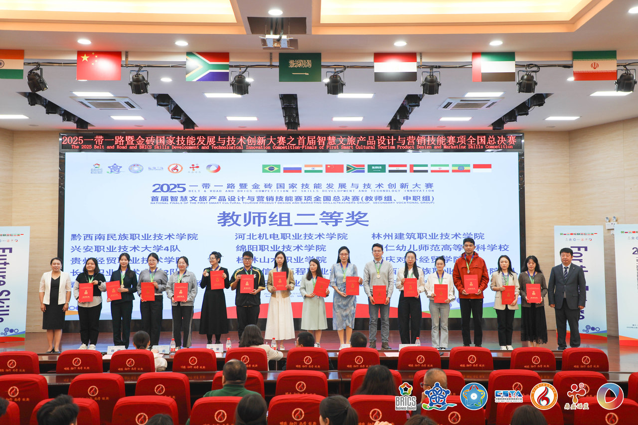 2025年11月14日,2025“一带一路”暨金砖国家技能发展与技术创新大赛之首届智慧文旅产品设计与营销技能赛项教师组全国总决赛在南宁市第六职业技术学校圆满落幕。文化与旅游学院旅游管理专业教师团队凭借优秀的文旅创新方案和出色的现场展示能力,从全国59支参赛队伍中脱颖而出,斩获教师组银奖、学校获最佳组织奖,充分展现了我校文旅职业教育的教学实力与教师队伍的专业素养。我校参赛教师团队由林筱筠和黄荣献2名教师组成。备...